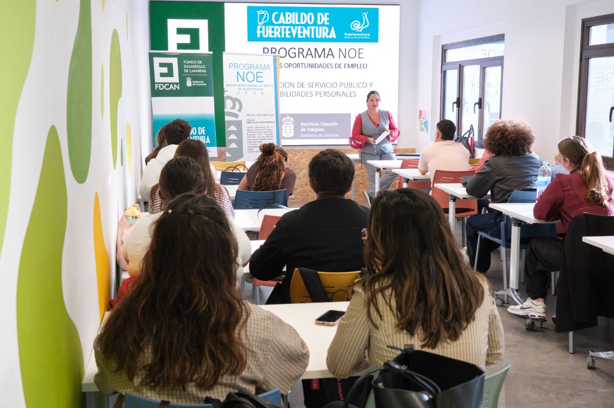 Los jóvenes que realizan prácticas en el programa Nuevas Oportunidades de Empleo (NOE) de Fuerteventura 2025 continúan ampliando su formación con nuevos módulos especializados en servicio público y desarrollo de habilidades personales. Esta iniciativa, que forma parte de las acciones complementarias del programa, busca mejorar las perspectivas laborales de los participantes que trabajan durante un año en los diferentes departamentos del Cabildo de Fuerteventura.