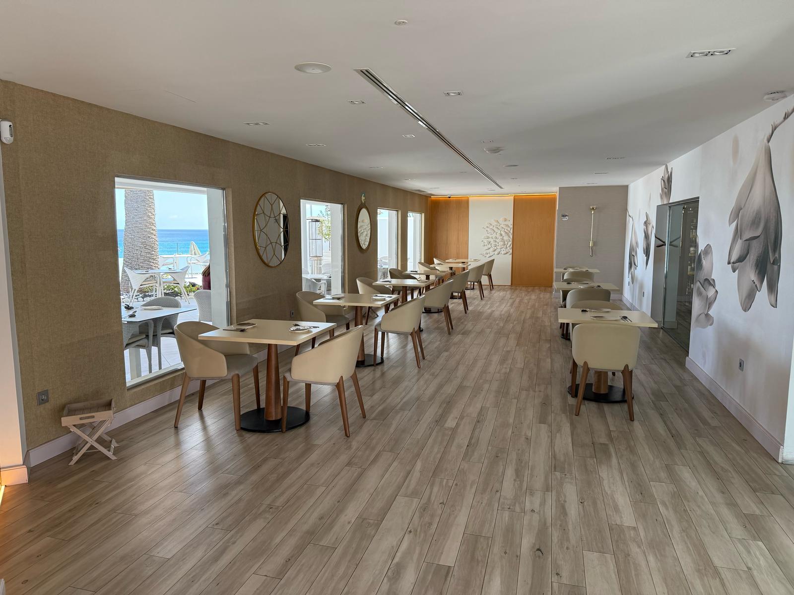 El restaurante cuenta además con dos terrazas: una cubierta y otra al aire libre, ambas abiertas al océano y decoradas en un estilo minimalista y cálido, que aporta confort y elegancia. Todos los espacios están concebidos para potenciar la privacidad y la experiencia sensorial. Un toque distintivo es que todo el equipo de sala viste guayaberas cubanas hechas a mano, un homenaje a los orígenes del chef.