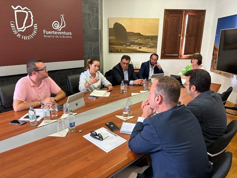 La presidenta del Cabildo de Fuerteventura, Lola García, y el consejero de Aguas, Adargoma Hernández, se han reunido con el consejero y el viceconsejero de Aguas del Gobierno de Canarias, Manuel Miranda y Marcos Lorenzo, respectivamente, con el objetivo de seguir coordinando la hoja de ruta que permitirá mejorar el abastecimiento de agua en Fuerteventura. Estuvieron presentes, además, con los gerentes del Consorcio de Abastecimiento de Aguas a Fuerteventura (CAAF), Francisco Hormiga, y del Consejo Insular de Aguas, Domingo Montañez.