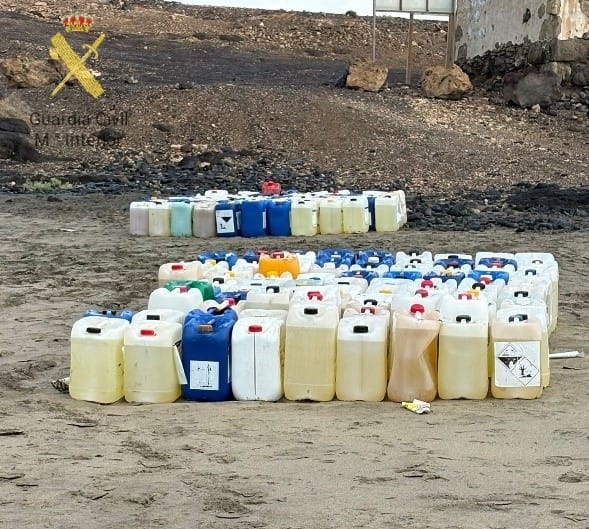 Tras un periodo de vigilancia, los guardias civiles observaron cómo, al llegar una embarcación a la costa, dos personas trataban de suministrarle garrafas de combustible. En ese momento se procedió a la detención de uno de ellos, mientras el otro varón huyó junto a otra persona a bordo de la embarcación, abandonando numerosas garrafas en la playa, que fueron incautadas por los agentes.