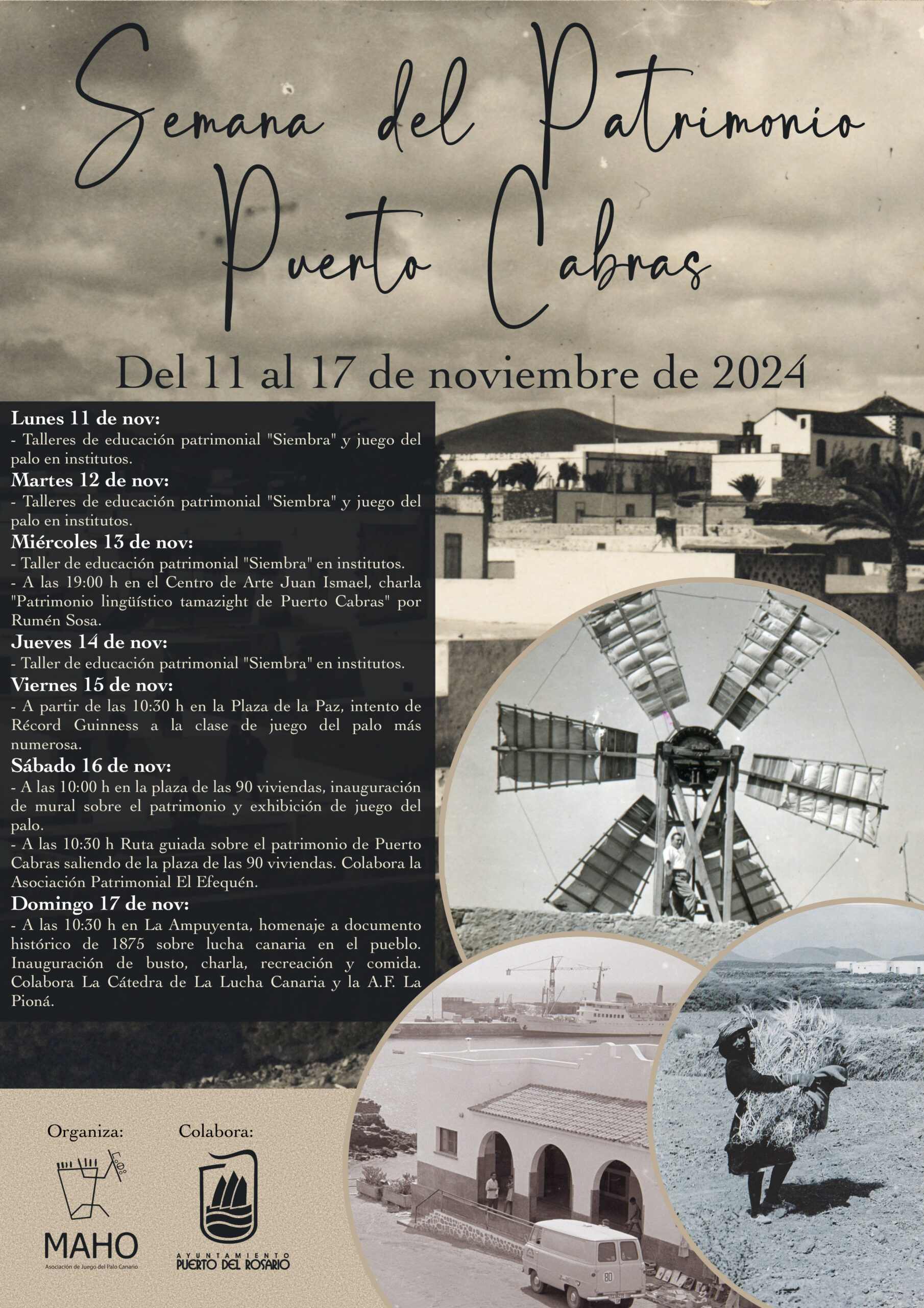 Del 11 al 17 de noviembre se está celebrando la semana del patrimonio “Puerto Cabras” en conmemoración del Día Internacional del Patrimonio Mundial (16 de Noviembre).