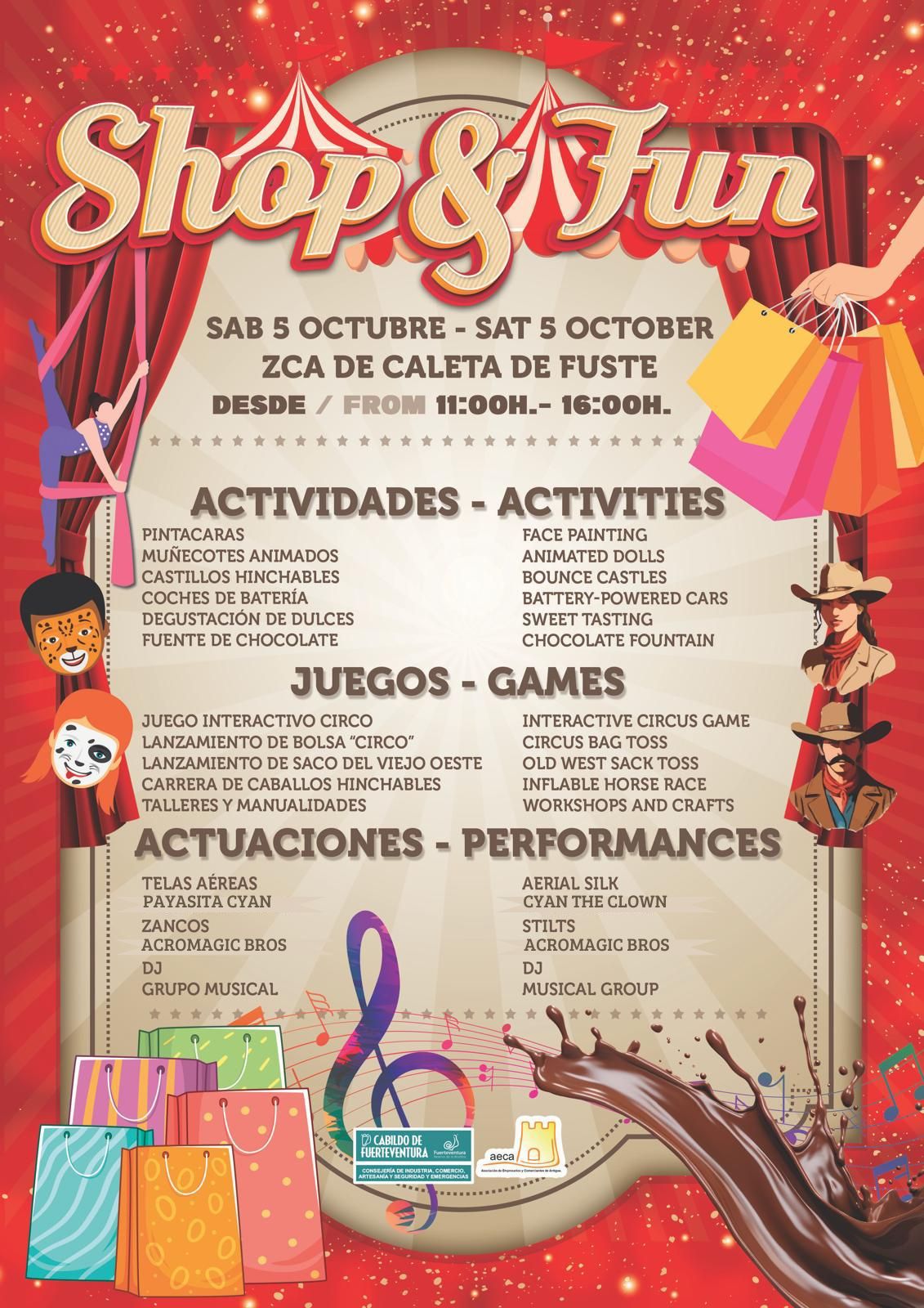 Este sábado 5 de octubre, la Zona Comercial Abierta (ZCA) de Caleta de Fuste se transformará en un escenario de diversión para todas las edades con el evento «Shop & Fun», organizado por Aeca y financiado por la Consejería de Comercio del Cabildo de Fuerteventura. Desde las 11:00 hasta las 16:00 horas, los asistentes podrán disfrutar de una variada oferta de actividades, juegos y actuaciones que harán de esta jornada una experiencia inolvidable.
