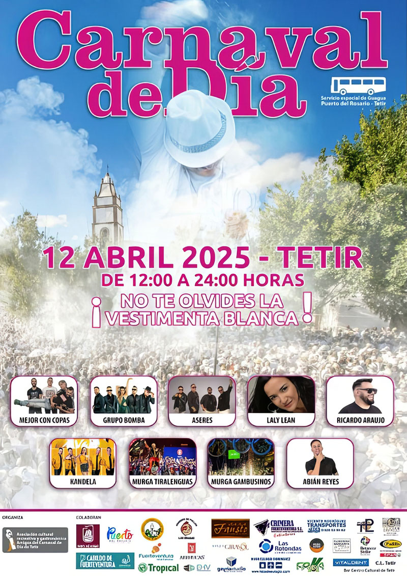 El próximo sábado 12 de abril, el pueblo de Tetir volverá a convertirse en punto de encuentro para miles de personas que acudirán a celebrar una de las citas más esperadas del año: el Carnaval de Día, una jornada pensada para disfrutar en familia, con amigos y con el pueblo volcado en una celebración que ya es parte del alma carnavalera de Fuerteventura.