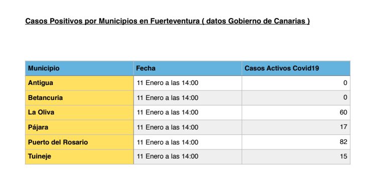 En Fuerteventura a las 14:00 horas de este lunes 11 de enero son Puerto del Rosario y La Oliva los municipios majoreros que lideran actualmente los casos de coronavirus.
