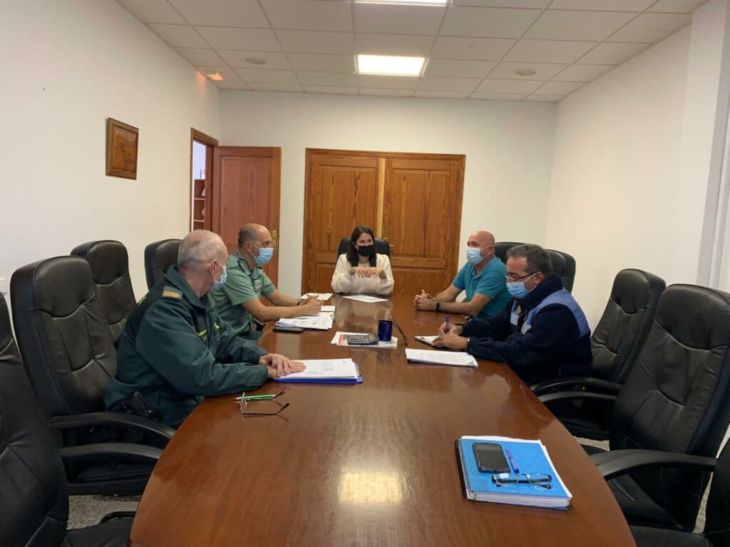 La alcaldesa de Tuineje, Esther Hernández, junto al concejal de Seguridad, Juan Manuel Roger, han mantenido una reunión de coordinación con los mandos de la Policía Local y de la Guardia Civil con el objetivo de establecer pautas para frenar la curva de contagios de la COVID-19 en el municipio.