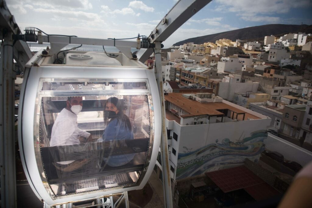 Este viernes fue también el primer día de funcionamiento de la noria ubicada en la avenida de Gran Tarajal. Un reclamo para fomentar el consumo en el comercio del municipio, ya que para acceder a ella basta con realizar compras en cualquier negocio o comercio de cualquier pueblo del municipio de Tuineje. Por cada 5 euros de compra en cualquier comercio, negocio o empresa de cualquier pueblo del municipio, se obtiene un pase para una persona. Es decir, por 10 euros de compra podrán subir dos personas. En el caso de familias, podrá subir toda la familia por compras a partir de 15 euros (máximo 6 personas por familia). Basta con enseñar el tique de compra en el acceso a la noria, que está ubicada en la avenida de Gran Tarajal.