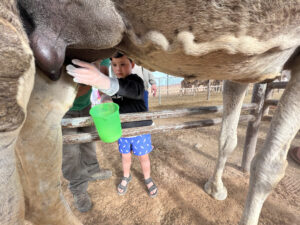 Uno de los mayores atractivos de Oasis Camp son sus experiencias premium, organizadas en exclusiva por el equipo científico del centro y no accesibles al público general en este formato. Encuentros educativos con jirafas, elefantes, lémures y camellos, exploraciones de hábitats naturales o visitas a la innovadora Dromemilk Camel Bio Farm convierten la semana en una vivencia irrepetible.