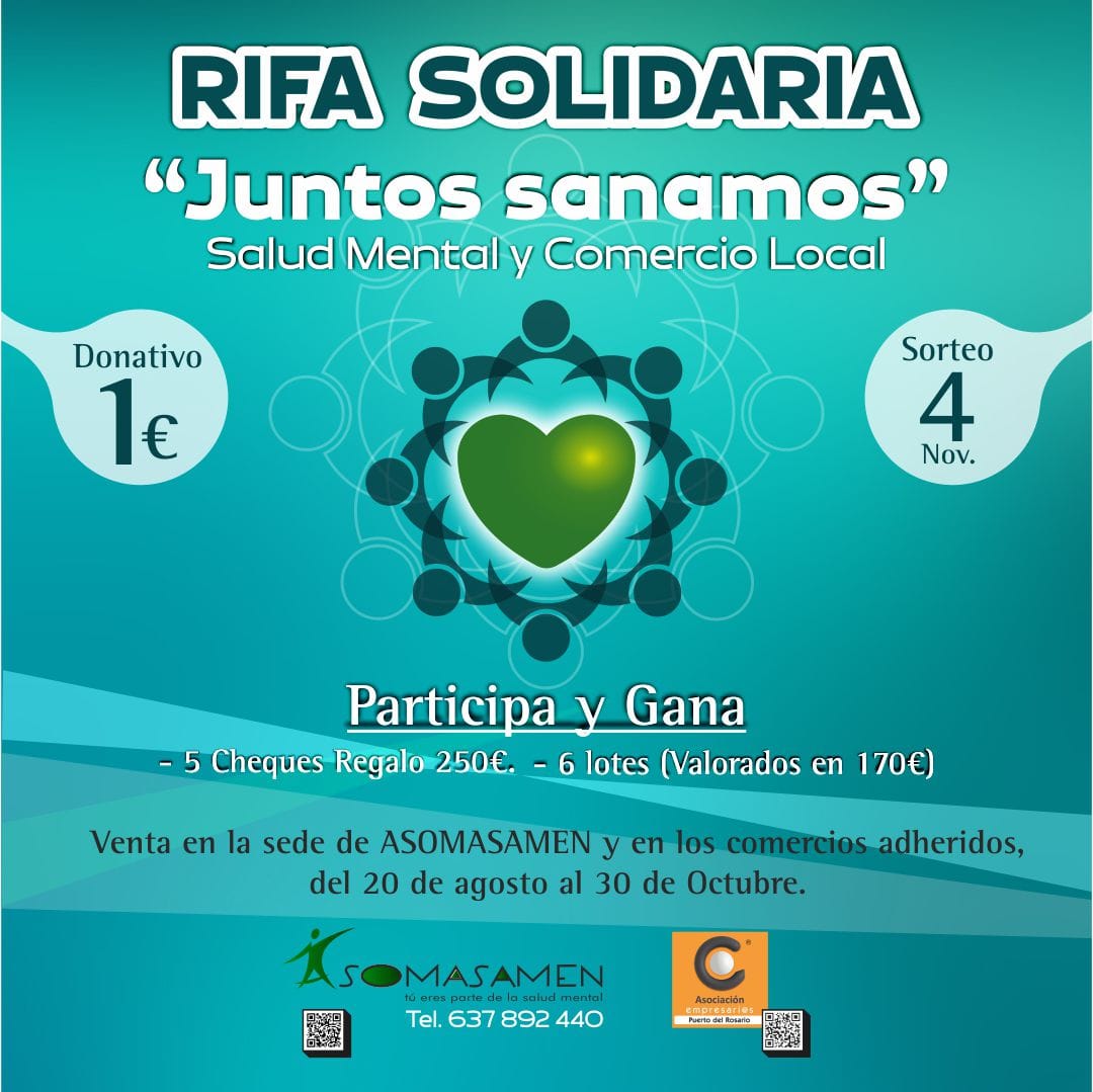 Del 20 de agosto al 30 de octubre de 2025 estará activa en Puerto del Rosario una iniciativa que combina solidaridad, salud mental y dinamización económica. La Asociación Majorera por la Salud Mental (Asomasamen) y la Asociación de Empresarios de Puerto del Rosario han lanzado una Rifa Solidaria, una campaña que tiene como doble objetivo recaudar fondos para las acciones de apoyo y prevención en materia de salud mental, y al mismo tiempo respaldar al comercio local.