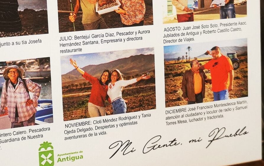 - Con el título Mi gente, mi pueblo, el Ayuntamiento de Antigua presenta y recupera la distribución de un calendario de sobremesa en el que participan una veintena de vecinos y vecinas del Municipio.