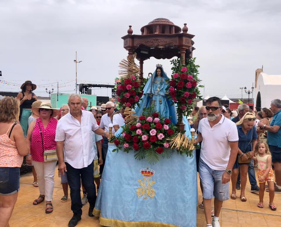 En el marco de las Fiestas en Honor a la Señora del Buen Viaje, El Cotillo celebró ayer, domingo 21 de agosto, su jornada principal con la procesión terrestre-marítima de la patrona local. Tras la función religiosa en la ermita y el recorrido por las calles, cientos de personas asistieron al embarque y desembarque de la virgen en el Muellito de El Cotillo.