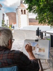 El evento, que se celebró como cierre del proyecto «Rincones Históricos: Fuerteventura a través de los Urban Sketchers», desbordó las expectativas iniciales al convertir la Plaza de Santa María en un espacio de creación artística compartida. Los participantes llenaron el entorno de cuadernos, acuarelas y miradas atentas al paisaje, capturando con detalle la esencia patrimonial de uno de los enclaves más emblemáticos de la isla.