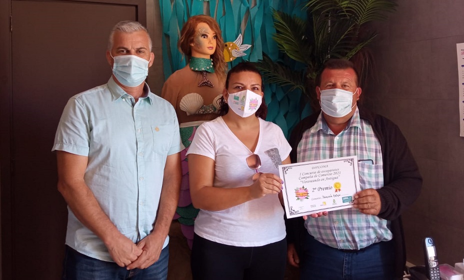 El alcalde, Matías Peña y el concejal Pedro M Armas entregaron los premios a los primeros establecimientos ganadores del Concurso al rincón veraniego mejor decorado, resultando ganador el Bar Plaza en Antigua, seguido de la Peluquería Reflejos y el Restaurante Mi Sitio, ambos también de Antigua, y en cuarto y quinto lugar, Species Pets Health Center y la cafetería Rocco, ambos de Caleta de Fuste.