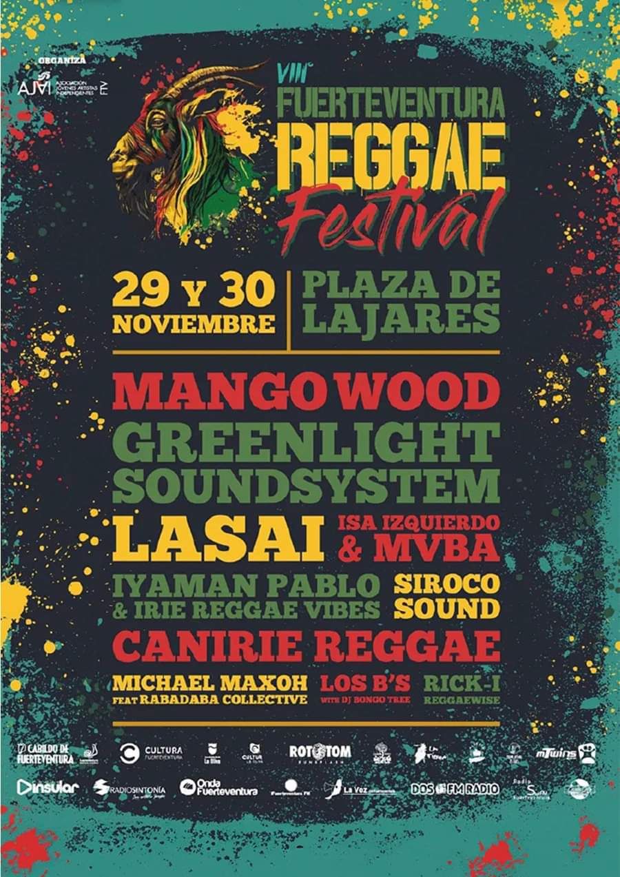 El Ayuntamiento de La Oliva, a través de la Concejalía de Cultura, que dirige David Hernández colabora con la organización de la octava edición del Fuerteventura Reggae Festival. El evento musical que desarrolla la Asociación Artístico – Cultural sin ánimo de lucro de Jóvenes Artistas Independientes, AJAI, prepara un fin de semana dedicado al reggae durante los próximos viernes 29 de noviembre de 18:00h a 03:00h y sábado 30 de 18:00h a 04:00h en la plaza de Lajares con un espectáculo gratuito para todos los públicos. Con el apoyo, a su vez, del Cabildo de Fuerteventura, este festival se sigue consolidando cada año en la Isla pues, ya ha logrado colocarse entre los eventos de mayor renombre del género en Canarias.