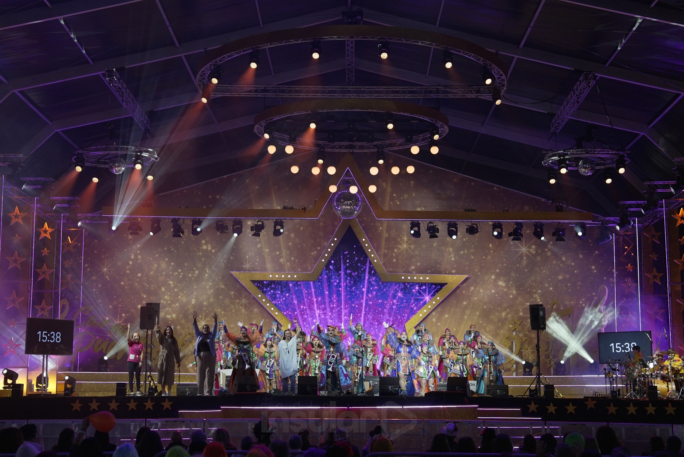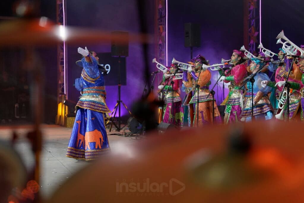 El primer tema, ambientado en un musical con estética africana, se centró en la dificultad para acceder a una vivienda y en la situación de los jóvenes que quieren quedarse en la isla. Con un tono directo, denunciaron los precios del mercado inmobiliario y la falta de oportunidades. “El majorero quiere quedarse y con estos precios hay que marcharse” , cantaron, en uno de los mensajes más claros del número.